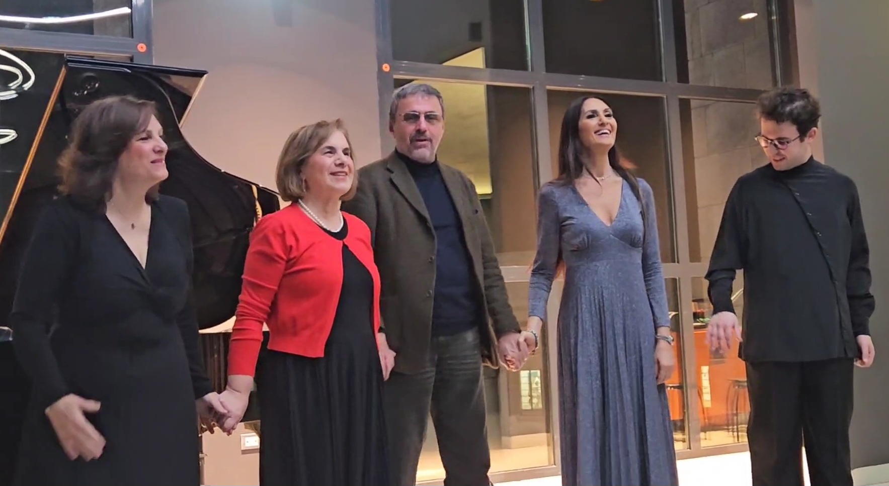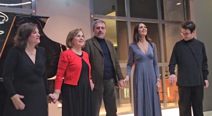 Le ampie vetrate affacciate sul Duomo, illuminate dal crepuscolo, hanno contribuito a un’atmosfera quasi contemplativa, in dialogo silenzioso con le musiche proposte. L’incontro è stato aperto dall’intervento storico-critico del professor Enrico Reggiani, che ha fornito alcune preziose coordinate per leggere il programma non come una semplice antologia femminile, ma come un attraversamento di poetiche molto diverse. Una chiave di lettura che ha permesso al pubblico di ascoltare i brani non “per categoria”, ma come tasselli di una storia musicale più ampia.
