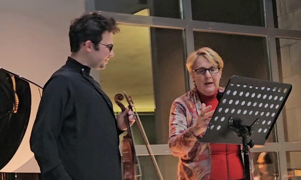 Della stessa nota compositrice statunitense è stata eseguita, con ottima resa, la Romanza op. 23 per violino e pianoforte da Roberto Arnoldi e dalla Caradonna. Un cambio di atmosfera, prima della Romanza, era arrivato con i due Haiku di Beatrice Campodonico, essenziali e sospesi, quasi piccoli lampi meditativi, ed eseguiti mirabilmente dal violinista Arnoldi.