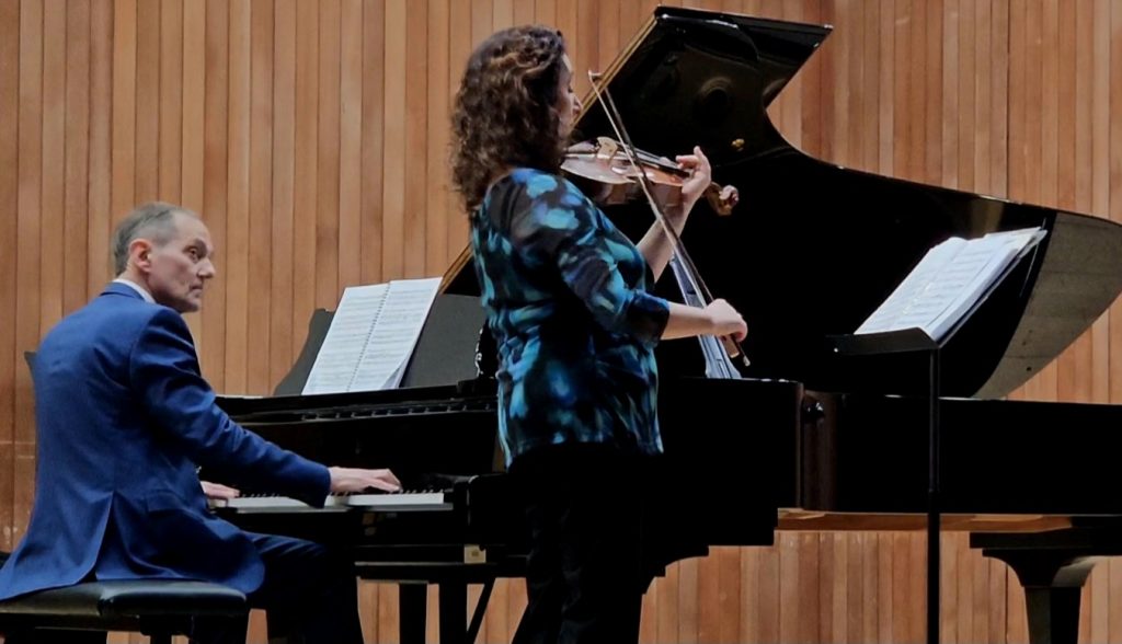 L’apertura del concerto con la Sonata per viola e pianoforte di Rebecca Clarke ha subito chiarito la scelta d’impaginato di inserire anche brani di corposo peso costruttivo. I tre ampi movimenti della bellissima sonata sono partiti con l’Impetuoso iniziale, dove Maria Ronchini ha cercato un suono denso che trovava nel pianoforte di Andrea Carcano un contrappeso vigile ed efficace. Quindi il Vivace e il successivo Adagio, che si è immerso in una linea capace di dare molto respiro al fraseggio.