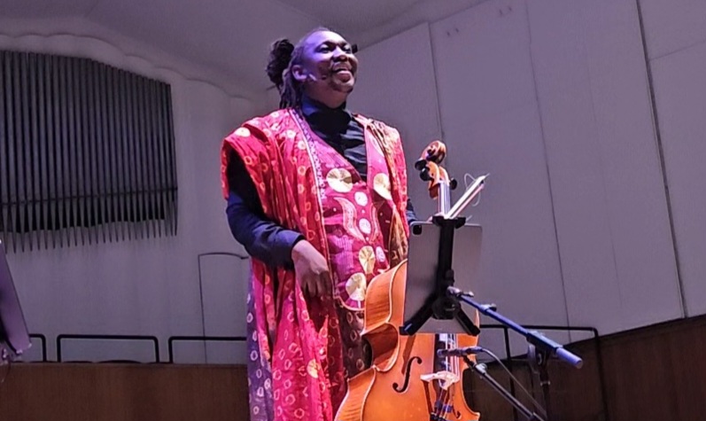 Ha ottenuto un evidente successo il violoncellista, vocalista e compositore sudafricano Abel Selaocoe nella serata organizzata dalla Società del Quartetto.
