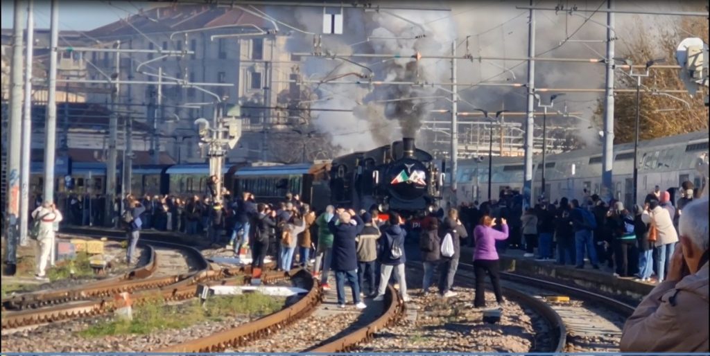 Avevo già visto anni fa qualche treno storico a vapore lì, ma stavolta lo spettacolo ha richiamato una folla come non si è mai vista, con gente dappertutto, compresi quelli che per meglio fotografare e filmare si sono sparpagliati per i binari; ne ho visti anche sulle scalette dei semafori. E intanto i treni “normali” erano pur sempre in servizio. Fortuna che nessuno ci è finito sotto; il pericolo c’era, eccome, e non ho visto interventi della polizia. Ma come avrebbero fatto in quella calca? Alla partenza il macchinista del treno storico ha dovuto sporgersi per mandar via i curiosi troppo temerari.