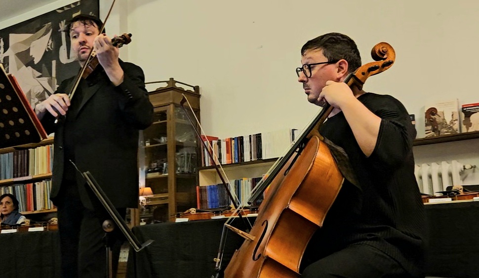 Al MaMu – Magazzino Musica, lo spazio raccolto ha fatto da cornice ideale al concerto di Lorenzo Rovati e Cosimo Carovani, due eccellenti strumentisti – il primo violinista, il secondo violoncellista – in un programma costruito come un percorso concentrato sull’ascolto reciproco e sulla definizione del suono nel duo ad arco, declinato attraverso epoche storiche differenti.