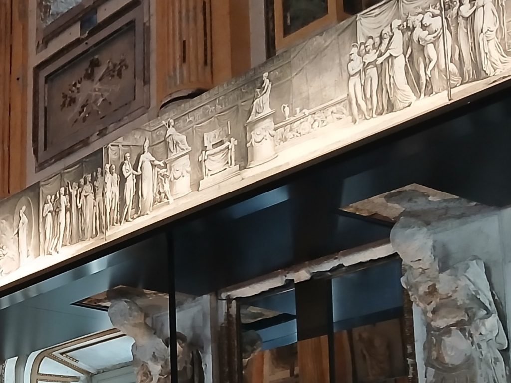 Nella Sala delle Cariatidi, collocate dove erano originariamente, ossia come decorazioni della lunga balconata (non più esistente ma “ricostruita” virtualmente con apposite strutture) le copie dei famosi Fasti di Napoleone (1803 -1807), ciclo di 39 dipinti monocromi a tempera su tavole, che illustravano in particolare battaglie e momenti della Campagna d’Italia: considerati da Stendhal un meraviglioso unicum, erano un capolavoro assoluto del neoclassicismo. Perduti nel già citato bombardamento, restano oggi le stampe incise dallo stesso Appiani e da altri incisori, risalenti al periodo 1807–1817.