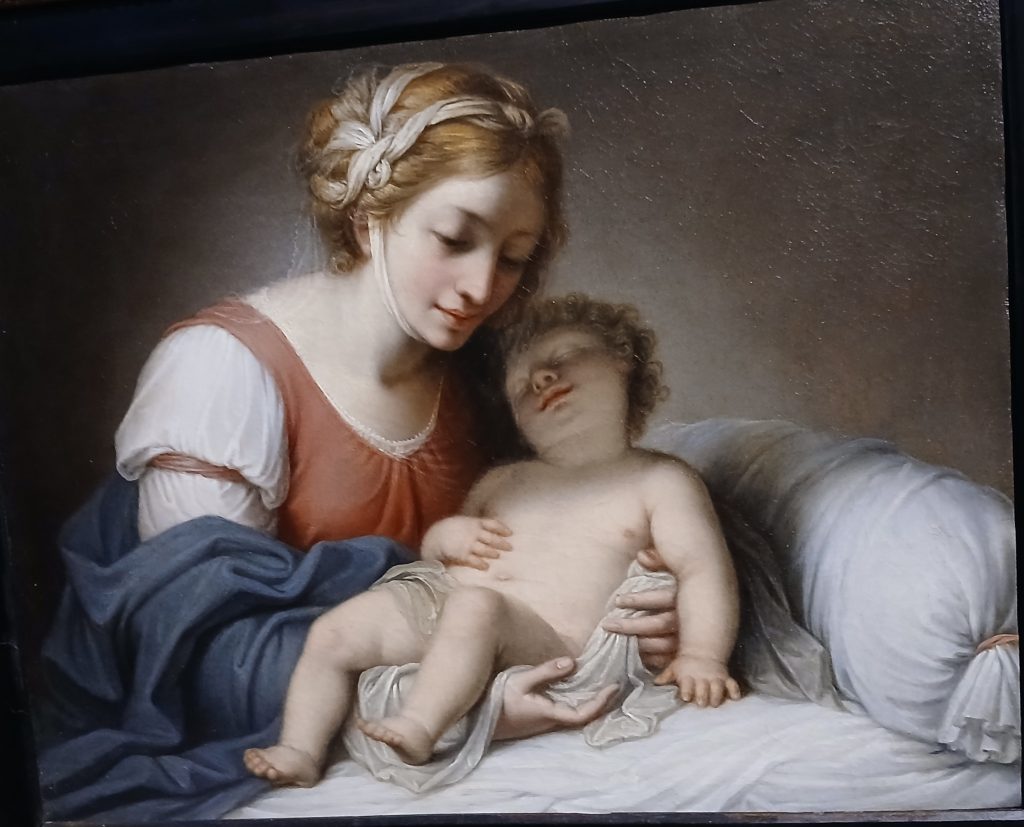 La mostra espone bellissimi ritratti – di Giuseppe Parini, di Napoleone, di Madame Hamelin, di Antonio Canova, di Ortensia e di Giuseppina di Beauharnais, di Madame Pétier con i figli, per citarne alcuni – e tele con soggetti soprattutto mitologici, ma anche religiosi.