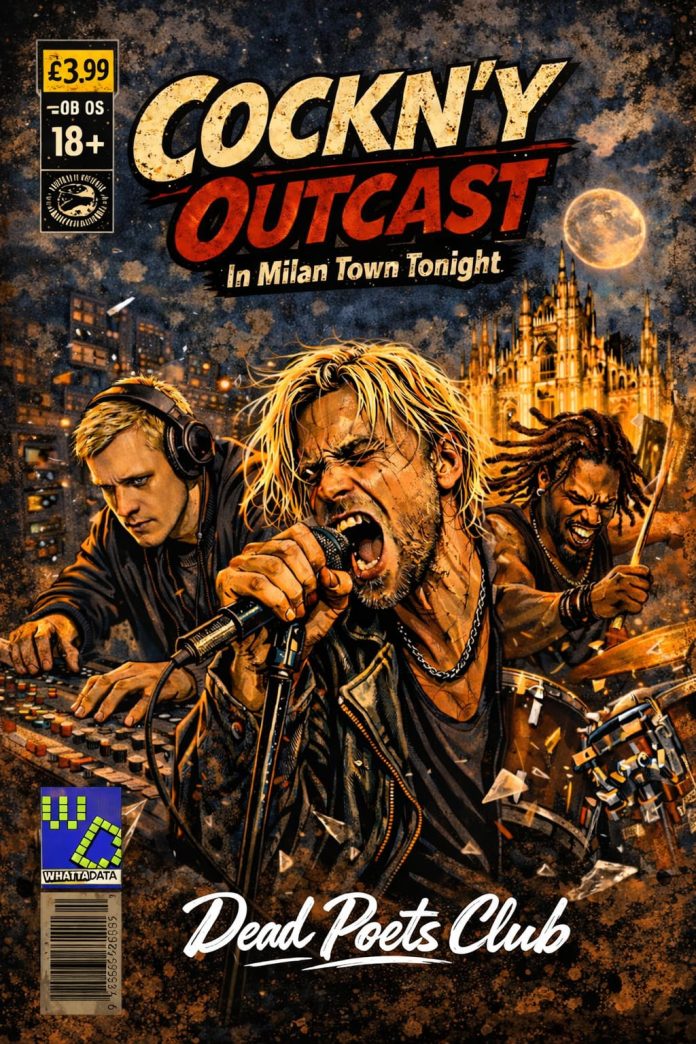 Da oggi, mercoledì 15 aprile, è disponibile in digitale “COCKN’Y OUTCAST — In Milan Town Tonight” (https://youtu.be/02h0zfstLN0), il fotoromanzo che racconta la storia della band omonima: un progetto narrativo e visivo realizzato interamente con strumenti di intelligenza artificiale generativa, che attraverso dieci tavole in stile graphic novel segue tre personaggi dalla cella di Wandsworth Prison fino a una serata milanese in cui la musica diventa l’unica via d’uscita.