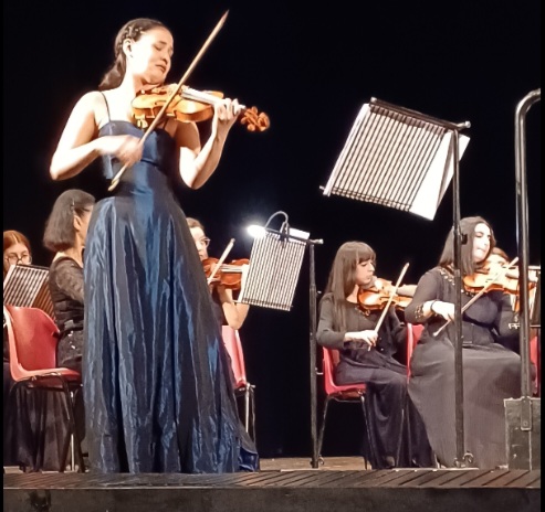 Articolato in tre ‘sezioni’, ciascuna dedicata ad un’epoca della storia della musica, il concerto proponeva per ognuna di esse un abbinamento tra un pezzo, per sola orchestra, o per orchestra e violino, di un compositore e un pezzo di una compositrice. L’orchestra chiamata a eseguire il programma era l’Orchestra femminile del Mediterraneo (OFM), fondata nel 2009 da Antonella De Angelis, ieri sera sul podio. Questa singolare orchestra, già nota al pubblico novarese, costituita da sole donne, provenienti da varie nazioni del mondo, e selezionate tra le migliori giovani strumentiste del loro Paese, dall’Albania, alla Corea al Brasile, oltre naturalmente all’Italia, si richiama al Mediterraneo come spazio di un ricco confronto e scambio culturale, in cui “la dignità delle donne e la libertà di esprimere il loro talento” (citiamo dal programma di sala) possa realizzarsi compiutamente superando ogni differenza di genere. Quanto alla sua fondatrice e direttrice, Antonella De Angelis, vanta un curriculum ormai ampio di direzione con varie orchestre internazionali, imponendosi con crescente successo all’attenzione del pubblico e della critica. Il ruolo di violino solista era affidato alla giovanissima (n.2006) Yuki Serino, vincitrice lo scorso 2024 del prestigioso Concorso Stradivari e con una esperienza concertistica di notevole spessore in Italia e all’estero.