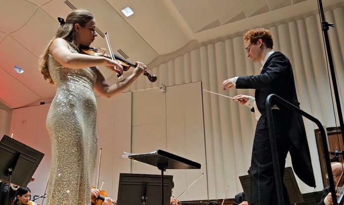 Cuore del programma, prima dell’intervallo, era il celebre Concerto per violino e orchestra op. 35 di P. I. Čajkovskij, affidato alla ventottenne violinista Hawijch Elders. La Elders ha offerto una lettura solida e controllata, attenta all’equilibrio tra slancio lirico e chiarezza formale, ben sostenuta dalla direzione accurata di Nicolò Umberto Foron. Una discorsività efficace, segnata da evidente sicurezza interpretativa, che ha permesso di superare con naturalezza le difficoltà tecniche del brano. Di qualità il bis solistico con il Capriccio n. 24 di Paganini.