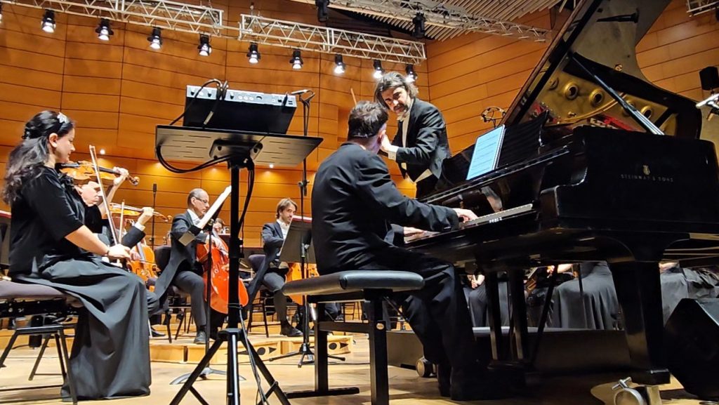 In un Teatro Dal Verme colmo di pubblico, con la presenza anche di molti studenti provenienti dalle scuole di Milano, abbiamo ascoltato un impaginato ben strutturato che ha accolto al suo interno anche una novità: un brano importante, su commissione de I Pomeriggi, di Dardust, ovvero Dario Faini. Dardust, conosciuto soprattutto come autore, orchestratore e produttore discografico di numerosi successi di musica “leggera” – collabora abitualmente con Mahmood, Sfera Ebbasta, Lazza, Elodie, Irama, Jovanotti, Angelina Mango, ecc. – vanta una solida formazione “classica” di pianista e compositore. Al Dal Verme ha presentato il suo Piano Concerto n. 1 in Prima Esecuzione Assoluta.