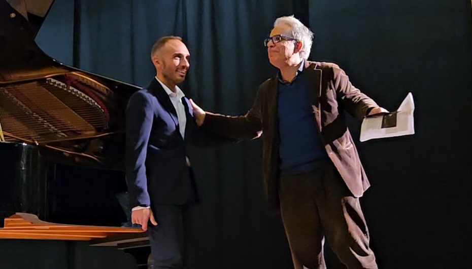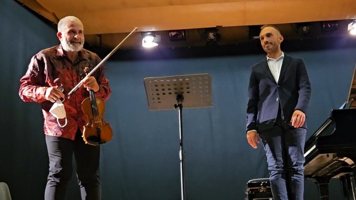 Due importanti interpreti, il violinista Domenico Nordio e il pianista-compositore Orazio Sciortino, hanno messo a disposizione degli ascoltatori il loro talento in un percorso che, partendo dal Settecento mozartiano, incontrava la contemporaneità dello stesso Sciortino per poi tornare alla prima metà del Novecento, con Claude Debussy e Francis Poulenc.Il perfetto equilibrio classico della Sonata in Sol maggiore K. 379 di Mozart ha introdotto il pomeriggio musicale, seguito da un interessante brano di Sciortino, Ludi, per violino (o viola) e pianoforte (2017). L’opera si articola in tre movimenti, di cui il secondo, Ludi, è suddiviso in quattro brevi sezioni, mentre un Post-ludium conclude il brano. La varietà di scrittura del quarantunenne compositore siracusano si è espressa in un lavoro corposo e contrastato, in cui si possono riconoscere influenze che spaziano da Stravinskij — per gli aspetti ritmici — alla Scuola di Vienna, per certe atmosfere atonali presenti in alcuni passaggi e anche ad un certo Jazz. Un brano ricco di idee, di momenti pacati alternati ad altri più concitati, resi con intensa espressività da entrambi gli interpreti: l’eccellente violino Ansaldo Poggi di Nordio, capace di una definizione timbrica nitida e profonda, e le chiare e precise armonizzazioni pianistiche dell’autore stesso.