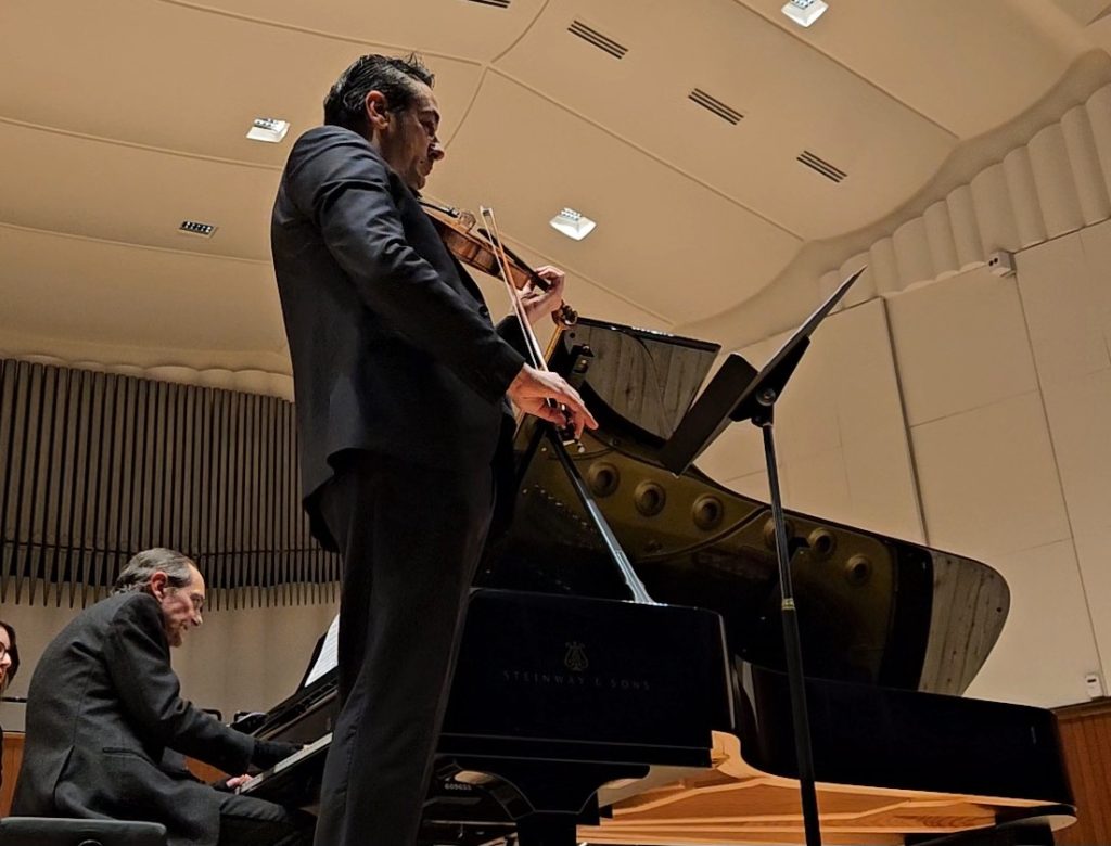 Due i bis concessi. Prima una trascrizione di Carcano/De Angelis per violino e pianoforte di una breve ed intensa composizione pianistica giovanile dell’italo-albanese Lodi Luka, Sensazioni infantili, ispirata al mondo dell’infanzia. Il compositore era presente in Sala Verdi e il brano è stato dedicato alla mamma Ninetta, anch’essa in sala. Notevole il secondo bis con Leggenda di Ottorino Respighi, un brano di calda ed intensa luminosità. Calorosi gli applausi ai protagonisti.