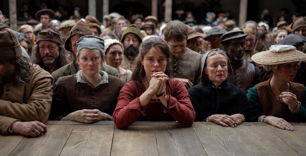 È il 1596, la famiglia Shakespeare perde l’unico figlio maschio ed è devastata dal lutto. Straziante e molto commovente la scena in cui Agnes vede il bimbo morirle tra le braccia, e urla con le stesse grida che aveva emesso durante il parto mentre Hamnet nasceva. La madre di Will (la bravissima Emily Watson), le ricorda di aver perso ben tre figlie bambine, e aggiunge che un genitore deve sempre aspettarsi che la vita di un figlio possa finire, e con lui i suoi sorrisi, i suoi giochi, le sue speranze; non deve mai dimenticare che nulla è scontato, e non si può impedire che il destino si compia.