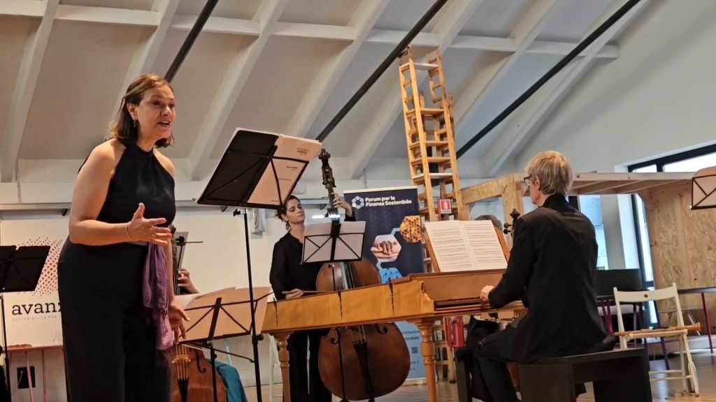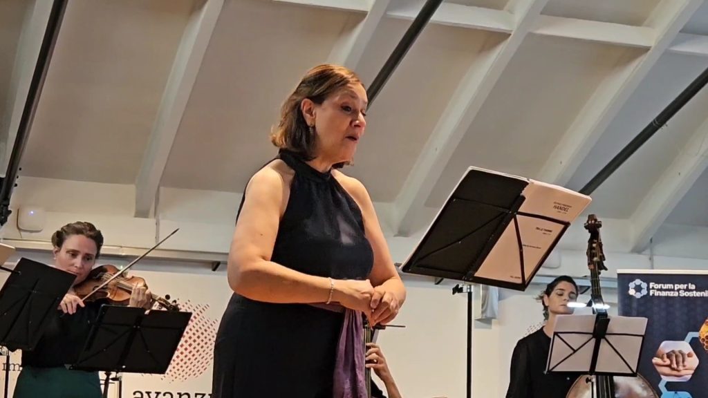 Protagonista assoluta, Roberta Invernizzi, ha dominato la scena con eleganza e sicurezza: una voce duttile, un fraseggio limpido e un controllo espressivo che uniscono rigore e passione hanno riempito di calore l’ampio ambiente, rivelatosi sorprendentemente adatto a questo repertorio.