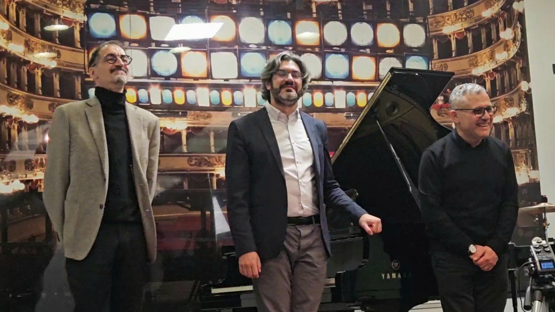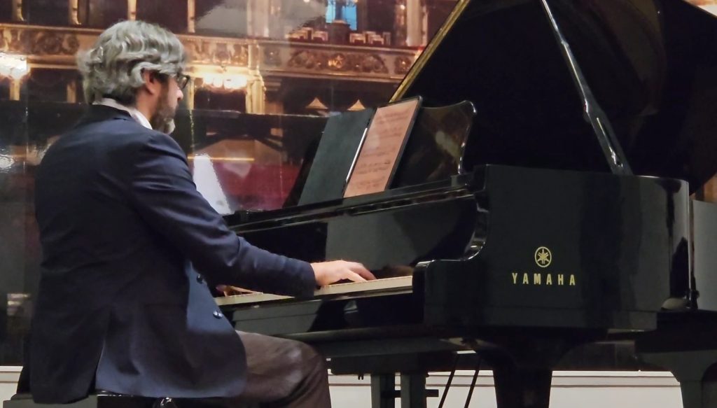 Conte ha studiato Composizione al Royal Northern College of Music e all’Università di Londra, e in questa piacevole mattinata sono emerse con chiarezza le molteplici qualità di un artista eclettico, autore di opere cameristiche, musiche da balletto, opere liriche e colonne sonore per cortometraggi. Tra queste, “War and Peace Song”, toccante lavoro premiato in diversi contesti internazionali, realizzato con il supporto dell’intelligenza artificiale e proiettato per l’occasione.