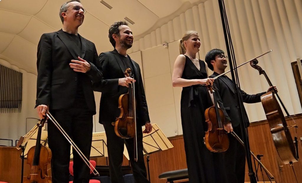 I quattro interpreti francesi sono Pierre Colombet e Gabriel Le Magadure ai violini, Hélène Clément – in sostituzione di Marie Chilemme- alla viola e Yuya Okamoto al violoncello. L’approccio quartettistico, sostenuto dall’uso di quattro strumenti Stradivari o di svuola stradivariana, è risultato esemplare per coesione e equilibrio timbrico, fino a dare l’impressione di un unico organismo sonoro, grazie alla costante attenzione reciproca nel cogliere e restituire gli elementi unitari che attraversano le tre grandi composizioni beethoveniane.