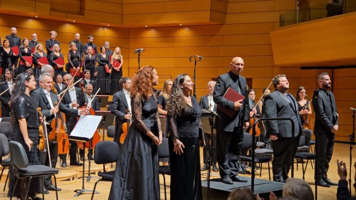 L’occasione, riservata agli abbonati e ai pochi che sono riusciti ad assicurarsi un biglietto, ha visto sul podio Diego Fasolis, alla guida dell’Orchestra de I Pomeriggi Musicali arricchita dalla presenza del Coro della Radiotelevisione svizzera e di un quartetto di voci soliste di primo piano: il soprano Lenneke Ruiten, il contralto Marie-Claude Chappuis, il tenore Alessandro Fisher e il basso Alessandro Ravasio.