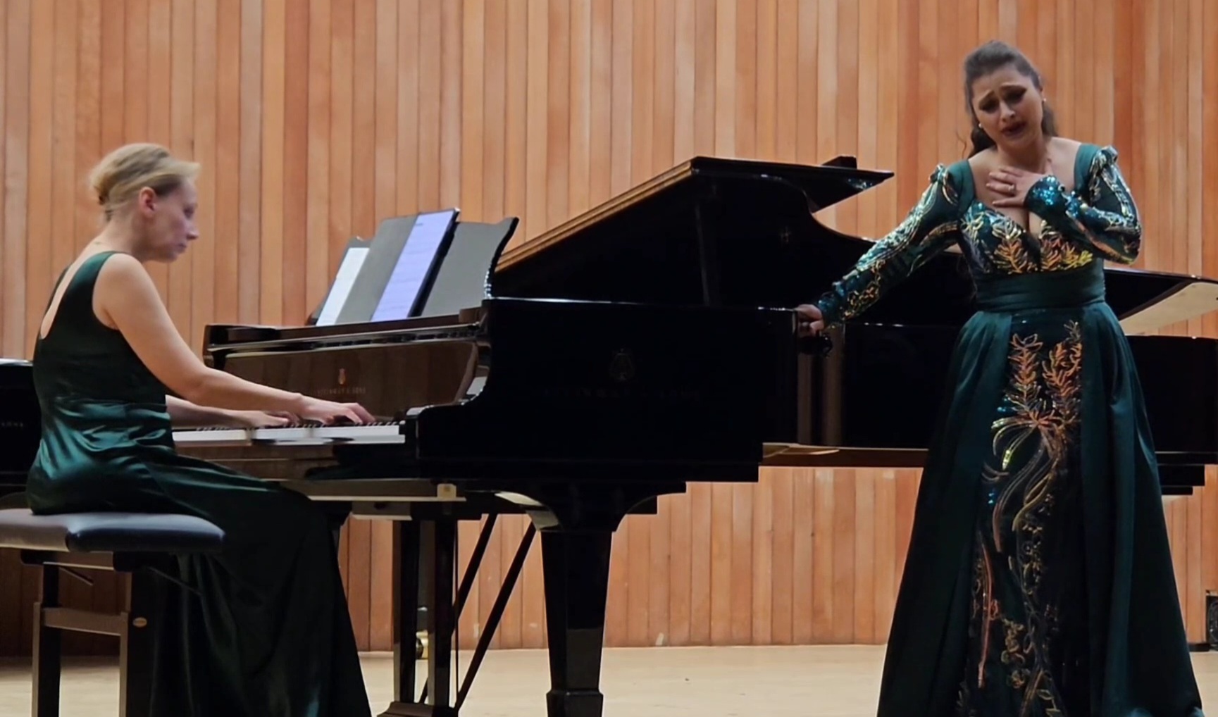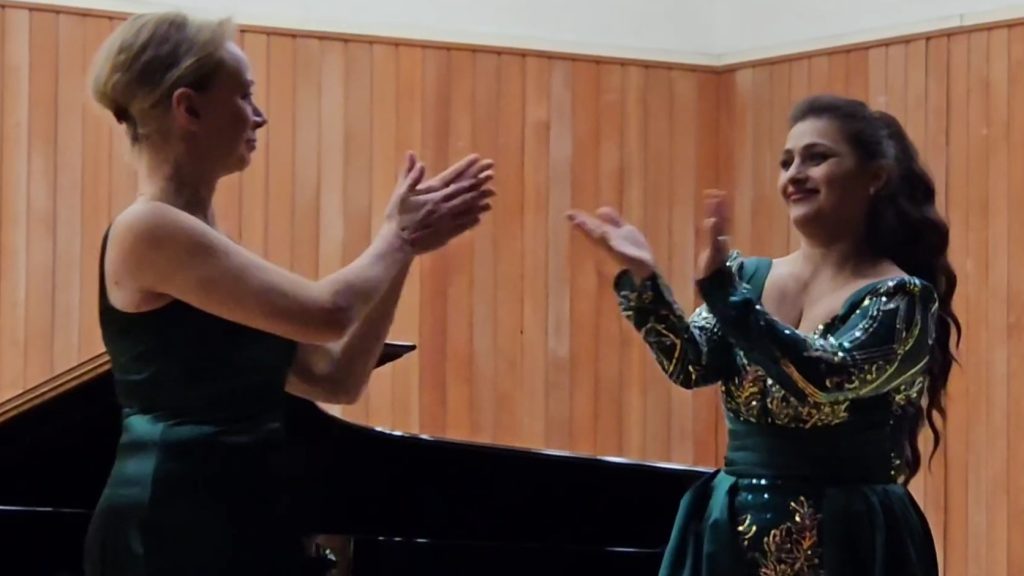 Accanto a lei la pianista e musicologa Svetlana Kosyatova, interprete moscovita attiva tra Israele, Europa e Stati Uniti, capace di un accompagnamento raffinato e partecipe, maturato anche attraverso un lungo lavoro accademico e orchestrale. Il programma ha dato ampio spazio ai grandi capisaldi dell’Ottocento operistico. Di Verdi è risuonata la romanza “EgIi non ride ancora..non so le tetre immagini” dall’opera Il corsaro: una pagina dove il fraseggio malinconico si apre a slanci improvvisi, terreno ideale per la vocalità calda, voluminosa e profonda della Giorgadze. Ma è soprattutto con “Casta diva” di Bellini, una delle arie più celebri dell’intero repertorio belcantistico, che la serata ha forse toccato il suo vertice lirico: la cantante ha modellato la lunga arcata melodica con un controllo che ha lasciato emergere sia la purezza del suono sia l’intensità emotiva. Nel versante pucciniano, altrettanto centrale, ha proposto brani amatissimi dal pubblico: “Sì, mi chiamano Mimì” da La Bohème, “Ch’il bel sogno di Doretta” dalla Rondine e “Donde lieta” ancora da Bohème, dimostrandosi ancora perfettamente a suo agio. Valide le pagine mozartiane con “E Susanna non vien… Dove sono i bei momenti” da Le nozze di Figaro e la celebre aria “Chi sa, chi sa qual sia”.