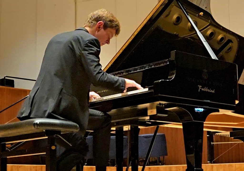 La centralità dei ritmi di danza, con accenti e memorie popolari legate anche alla tradizione folcloristica di molte regioni europee, ha permesso di passare da un autore all’altro senza soluzione di continuità, come in un’ampia suite ideale. L’unica sosta “forzata” è stata quella dell’intervallo, dato l’impegno e la corposità del programma. Ci voleva anche l’ancora giovane età di questo ottimo interprete per affrontare una simile sequenza senza concedersi quel minimo respiro capace di creare una distanza tra una tipologia espressiva e l’altra.