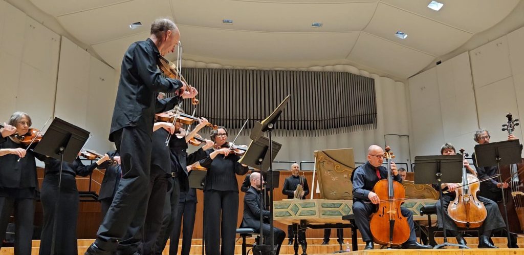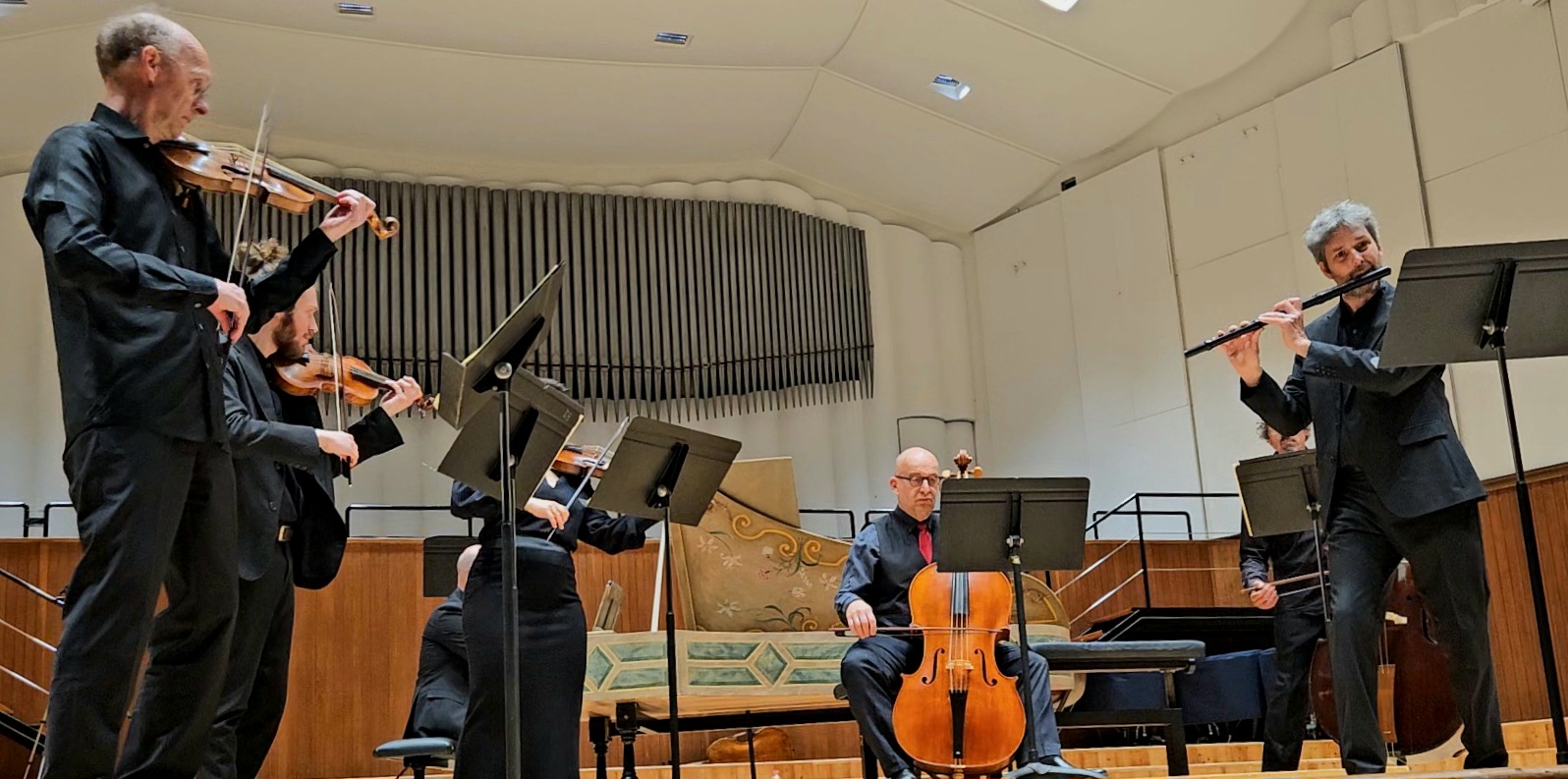 La dimensione più ridotta del gruppo cameristico nella Suite n. 2 in si minore per flauto e orchestra BWV 1067 ha creato un’atmosfera più raccolta, nella quale è emersa in primo piano la prova dell’eccellente flautista Gergely Bodoky, anche coordinatore del gruppo nei sette movimenti della Suite. Di evidente riconoscibilità la qualità dell’orchestra tedesca nel calibrare le dinamiche e nel ridurre le volumetrie all’occorrenza. Di grande impatto virtuosistico la celebre Badinerie conclusiva, che mette ulteriormente in luce le qualità del flauto solista.