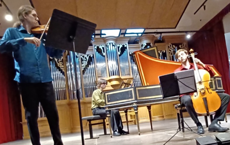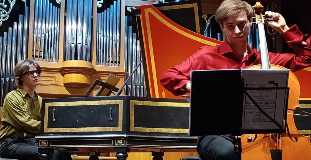 Davvero coinvolgenti i due tempi lenti, per intensità espressiva. Nell’introduzione abbiamo illustrato i grandi meriti dei due strumentisti’ in prima linea’, ma non possiamo certo tacere del terzo, bravissimo, protagonista del concerto, Gioele Cantalovo, che in questa serata ha dimostrato, se mai ce ne fosse bisogno, di essere già qualcosa di più di una promessa, interpretando con sensibilità e bravura il lavoro, richiestogli da queste pagine di musica, di “regia sonora”, in cui la tastiera non deve solo sostenere il basso, ma deve saper improvvisare un accompagnamento che riempia i vuoti armonici, senza mai prevaricare i solisti, in particolare nel Trio, fungendo da collante tra il rigore del violoncello e il volo del violino. In conclusione, questa selezione di brani non è stata solo una dimostrazione di abilità tecnica, ma un viaggio filologico che ha restituito vitalità a un repertorio troppo spesso considerato di nicchia, trasformandolo in un’esperienza d’ascolto coinvolgente e moderna. Pieno e più che meritato il successo di pubblico, che riempiva l’Auditorium del Cantelli, sottolineato da un applauso prolungato e generoso. Niente bis.