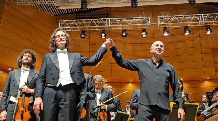 Le interpretazioni ascoltate, grazie alle mani prodigiose di Taverna e all’eccellente direzione di Marco Angius, hanno restituito la sostanza musicale di Prokof’ev con equilibrio e incisività, illuminando la complessa trama ritmica e la tensione espressiva dei tre concerti. Splendido in particolare il Concerto n. 3 in do maggiore op. 26, il più noto del ciclo, eseguito dopo il breve intervallo. Applausi fragorosi da parte del numeroso pubblico e ripetute chiamate in scena per il pianista, che ha voluto regalare come bis un virtuosistico brano jazz di Friedrich Gulda: uno strepitoso Piano Play n.6. Toccata Il progetto proseguirà sabato 25 ottobre, quando Taverna ripeterà inizialmente il Concerto n. 1 per poi affrontare il Concerto n. 4 per la mano sinistra e il n. 2, in attesa della futura serata che riunirà i cinque Concerti di Prokof’ev in un’unica straordinaria impresa pianistica — un traguardo raramente tentato nella storia dell’interpretazione prokof’eviana.