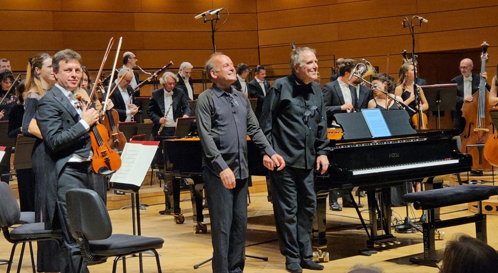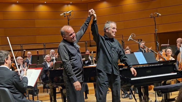 Due fuoriclasse del pianoforte come Louis Lortie e Alexander Lonquich hanno unito le loro qualità interpretative in un programma molto interessante, interamente dedicato all’uso dei due pianoforti, spesso insieme all’Orchestra de I Pomeriggi Musicali diretta dagli stessi pianisti. Brani di Poulenc e Mozart, con anche un breve Busoni sempre legato a Mozart, si sono succeduti portando al successo una serata probabilmente memorabile. L’anticipazione solo pianistica, all’ingresso dell’orchestra, con il graziosissimo Capriccio d’après Le Bal Masqué del compositore parigino, ha rivelato subito la cifra interpretativa di un duo speculare per equilibrio e capacità espressiva.