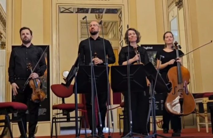Un avvio di “Lontananze creative” affidato al Quartetto Noûs — Lorenzo Gentili Tedeschi e Alberto Franchin ai violini, Sara Dambruoso alla viola, Ainhoa Maria Castelló Amorós al violoncello — che ha costruito un percorso denso e tutt’altro che lineare, attraversando alcune traiettorie fondamentali del Novecento e del presente.