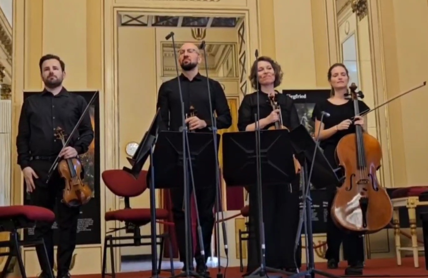 Brani molto diversi tra loro hanno mostrato le infinite potenzialità del quartetto d’archi, già esplorate dai compositori del primo Novecento e spinte oggi verso esiti di maggiore arditezza. Il programma accostava György Kurtág, Leoš Janáček, Luciano Berio e Adriano Guarnieri, quest’ultimo presente in sala. L’apertura con Hommage à András Mihály , 12 Microludi op. 13 di Kurtág ha subito posto l’ascolto in una dimensione di estrema concentrazione, rivelando le eccellenti qualità dei quattro interpreti: precisi, coesi, perfettamente sincronizzati anche nei suoni più impercettibili. Nei brevissimi pezzi, composti tra il 1977 e il 1978, affiorano frammenti, gesti minimi, vere e proprie schegge sonore sospese nel tempo, rese con grande nitidezza.