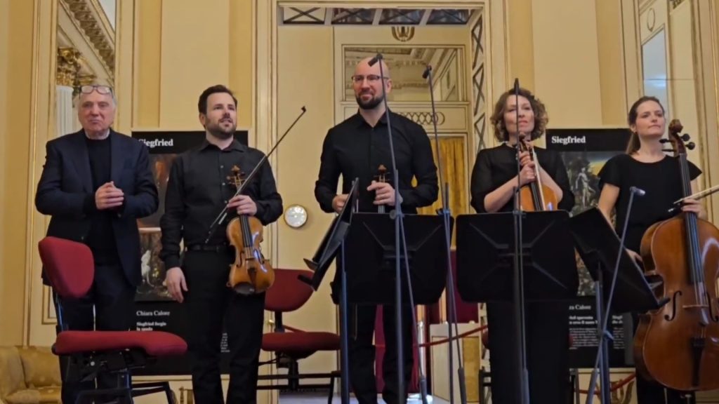 Le Glosse di Berio (1987), brano breve ma denso, pongono al centro il gesto, elemento al quale partecipano in modo sincrono tutti e quattro gli interpreti. Una scrittura concentrata, restituita con chiarezza e tensione. In chiusura, Dies Irae. Agli innocenti del mare, Secondo Quartetto di Guarnieri (2020), ha introdotto un ulteriore livello di intensità, anche per il forte peso etico che lo attraversa. Un lavoro compatto, aspro, ricco di tensione narrativa, affrontato dal Quartetto Noûs con lucidità strutturale e partecipazione. Calorosi gli applausi, condivisi con il compositore salito sul palco al termine.
