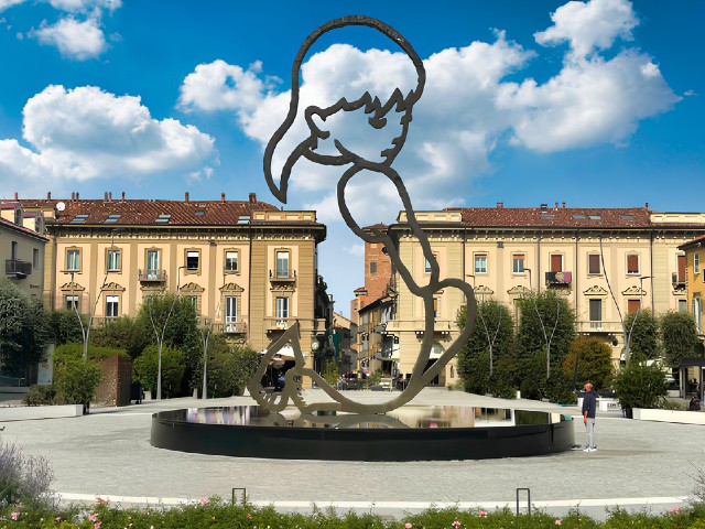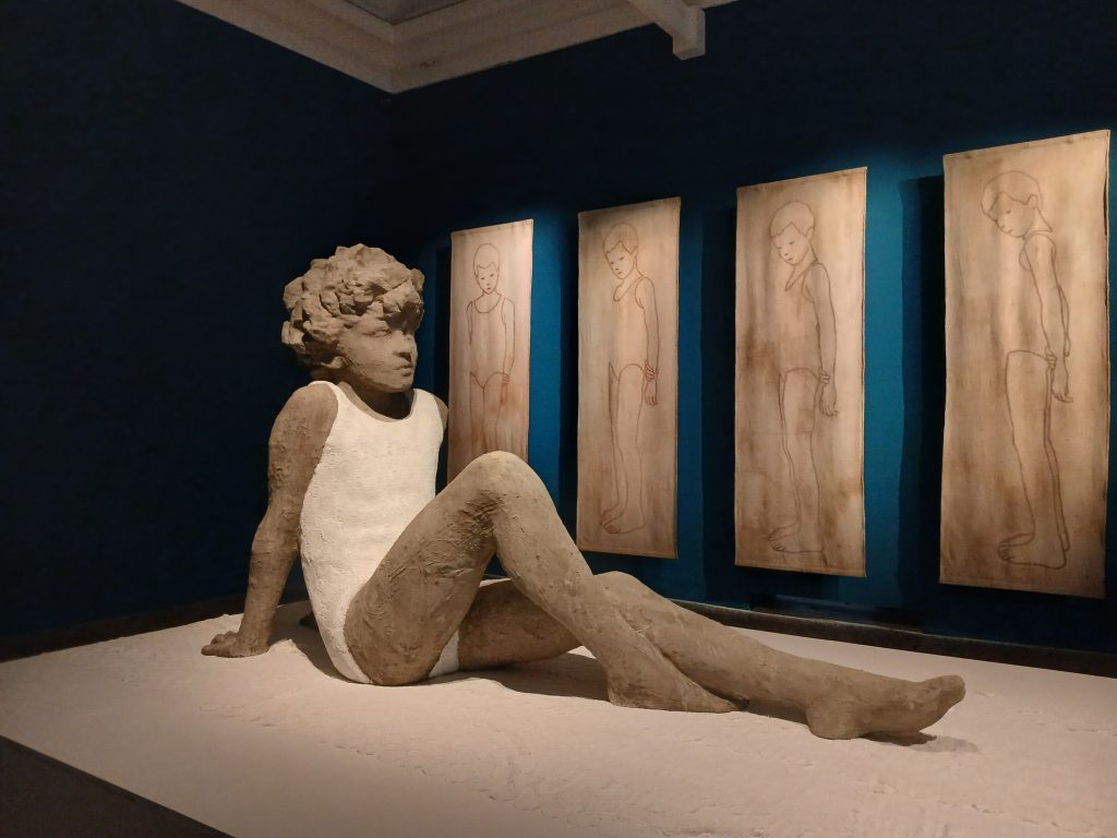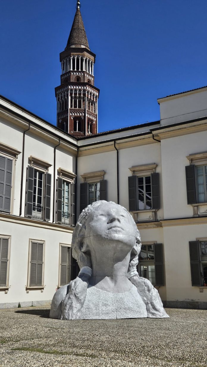 Nel cortile di Palazzo Reale, una testa gigante di bambina che guarda verso il cielo ( Don’t Let Me Be Wrong, 2024) ci porta ad osservare il mondo uscendo all’aperto, con gli occhi spalancati, con la capacità ancora di stupirci e di cogliere la verità più profonda.