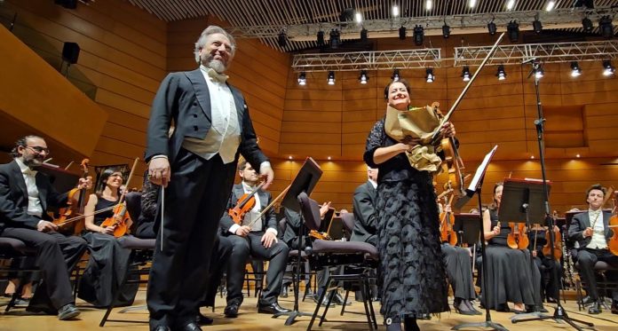 Dopo l’intervallo, il celebre “racconto” di Rimskij-Korsakov e la sua Shéhérazade op. 35 hanno messo in risalto i colori della compagine orchestrale, di molti solisti e soprattutto quelli del primo violino, l’ottima Fatlinda Thaci, che con il suo timbro caldo, preciso e ricco d’espressione ha spesso ruolo di protagonista nell’evocare il tema introduttivo e finale, oltre che in una breve e intensa cadenza.