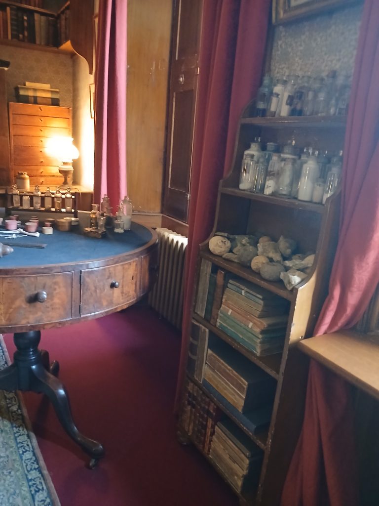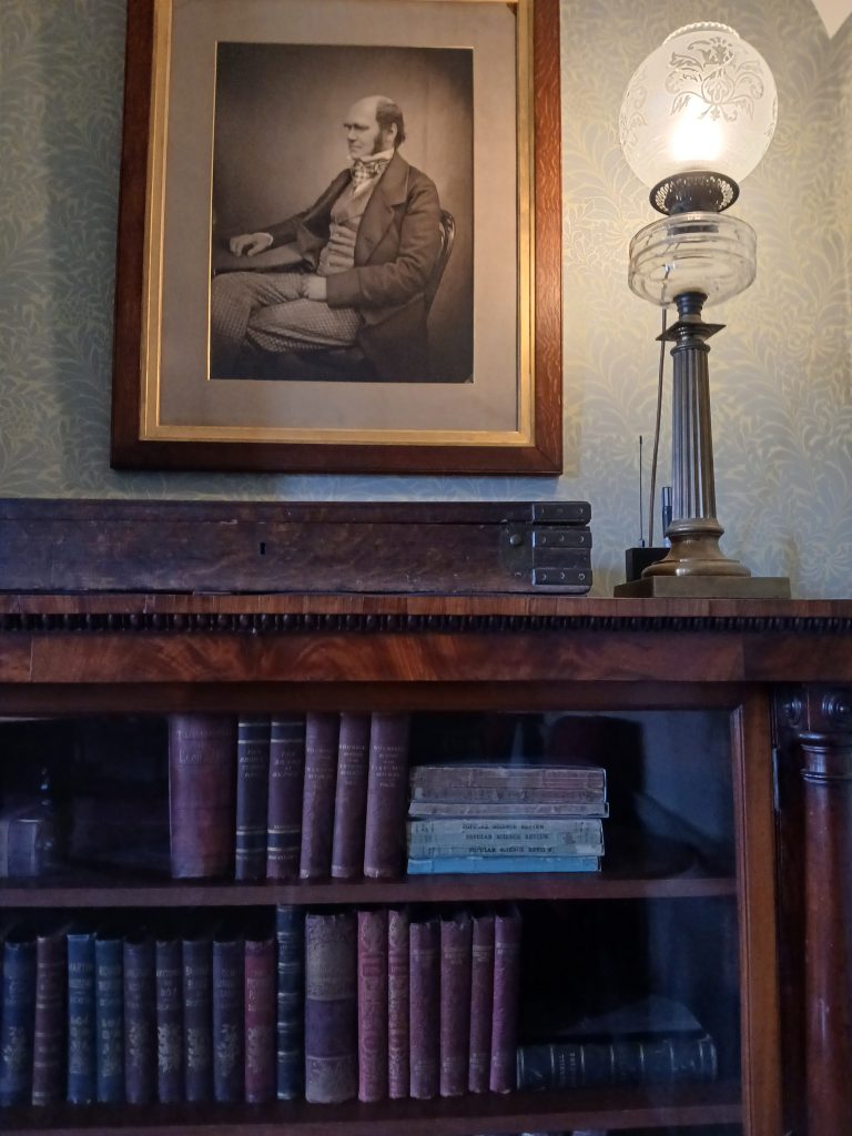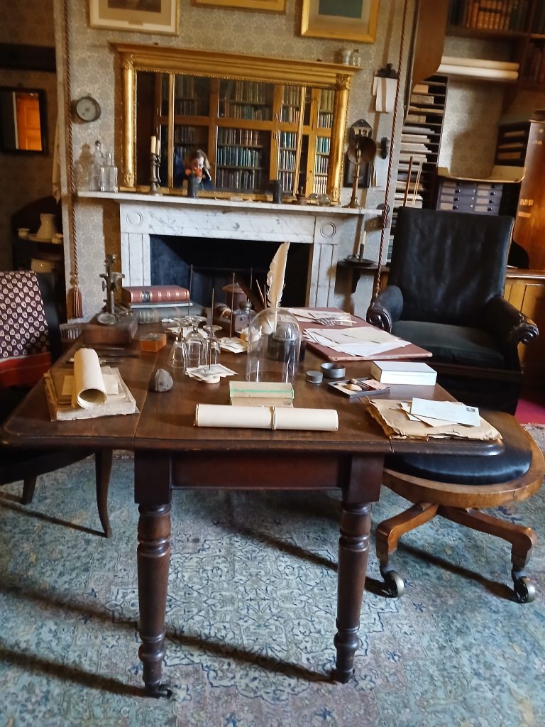 Entrando, si visitano le stanze al pianterreno: subito, davvero emozionante, ecco The Old Study, restaurato e ricreato sulla base di fotografie originali degli anni ‘70 dell’800. Qui Darwin elaborò la sua teoria evolutiva, utilizzando osservazioni, dati e reperti raccolti durante il suo famoso viaggio sul Beagle, un vero giro del mondo in cinque anni, dal 1831 al 1836. Il suo lavoro fu pubblicato e diffuso, come testo certamente rivoluzionario, nel novembre 1859: The Origin of Species by Means of Natural Selection divenne subito un best seller e richiese numerose altre edizioni.