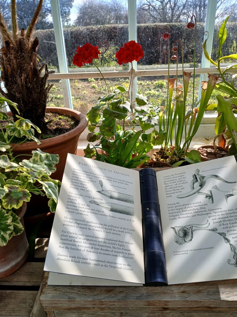 Nel grande giardino, le serre, costruite a partire dal 1860, rievocano gli esperimenti e le osservazioni di Darwin sulla riproduzione delle piante, in particolare le orchidee.