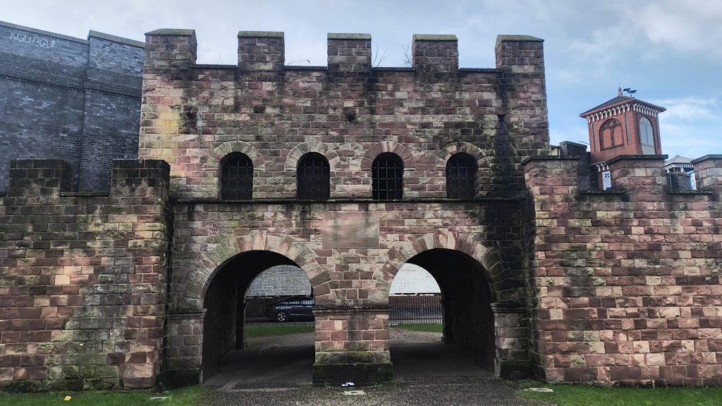 Atterrato alle 8.45 ore locali, prendo un biglietto ferroviario round trip (andata/ritorno) per spostarmi dall’aereoporto verso il centro (11,50 sterline in tutto). Arrivato alla Piccadilly station intorno alle 9.15, in 25 minuti di cammino arrivo – nel quartiere di Castlefield – alle rovine romane, che consistono fondamentalmente in una fortificazione ricostruita e una cinta muraria al centro di una piccola distesa verde.