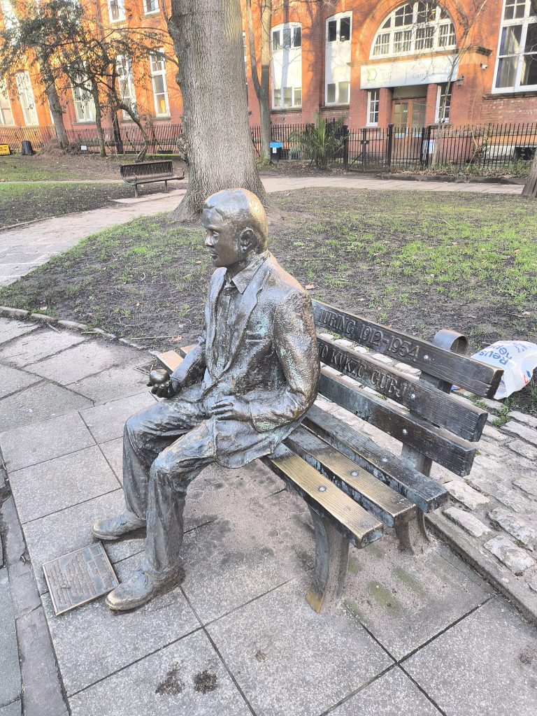 Terminata la visita alla Galleria, torno nel quartiere della stazione dove visito (sono le 13.30 locali) i Sackville Gardens, dove c’è una statua-memoriale del celebre matematico Alan Turing, uno dei pionieri della scienza computazionale, nativo proprio di Manchester.