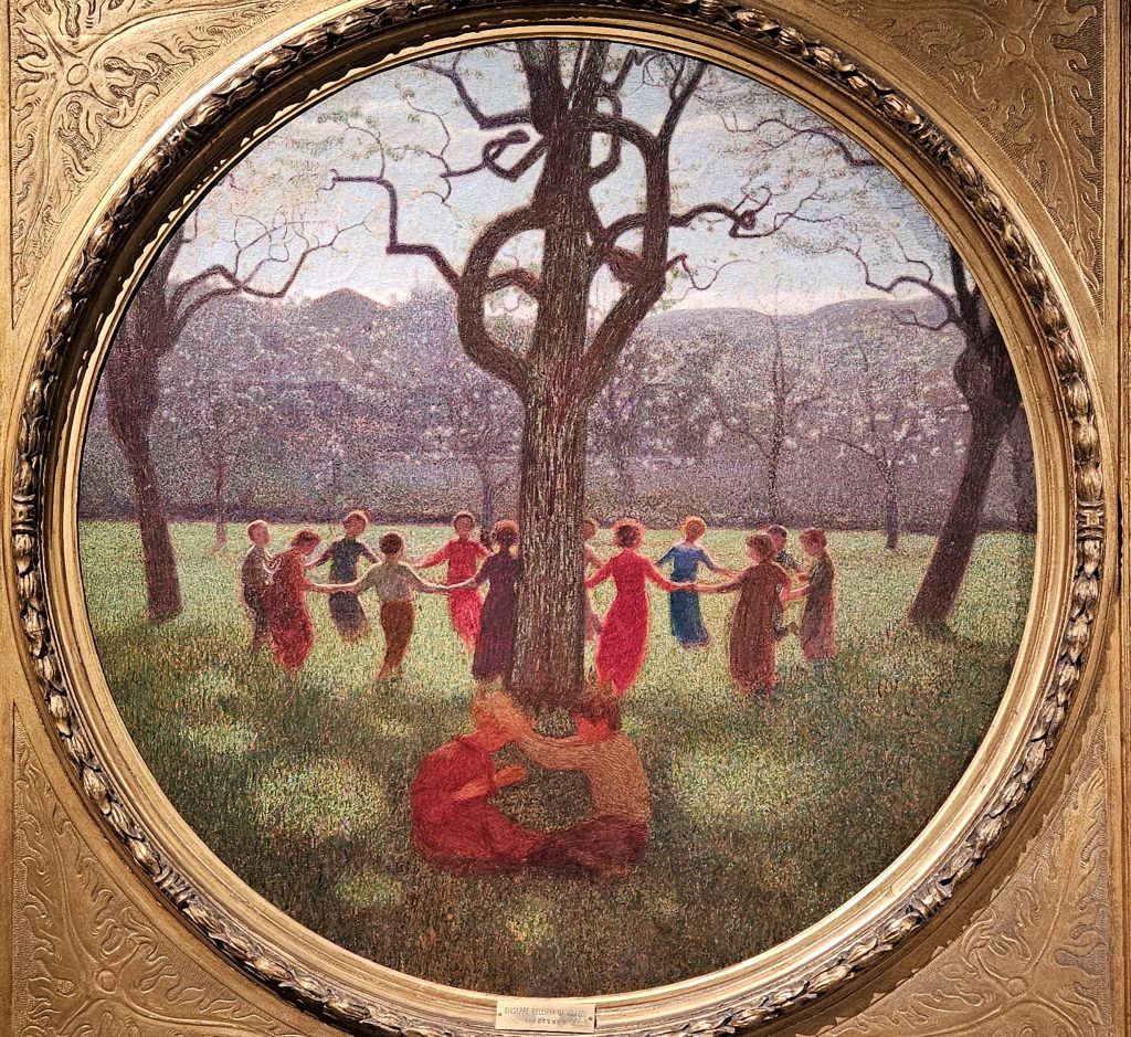 Tra i quadri, davvero splendidi per la luce che emanano e per i significati simbolici spiritualisti legati ai temi della vita, dell’amore e della morte, intrecciati ai paesaggi naturali, spiccano le tele già citate nell’articolo di Ojetti (il quale aveva però stroncato, a differenza di altri critici, il magnifico Autoritratto del 1899) spesso con titoli differenti, come Lo specchio della vita (1894), Fiore reciso o Il morticino (1903), Idillio campestre nei prati della pieve a Volpedo (Il girotondo),dipinto tra il 1896 e il 1901.