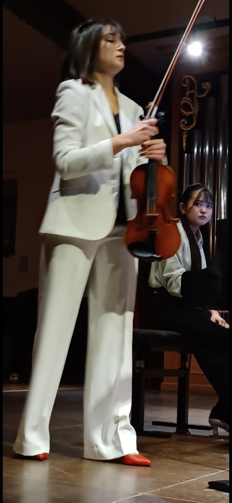 Si tratta di un pezzo che, pur composto nel 1918, risente ancora, com’è tipico della musica britannica di questo inizio ‘900, dell’influenza del tardo romanticismo tedesco, in particolare di Brahms, per la solidità costruttiva contrappuntistica, che è uno dei caratteri salienti di questa, che è una delle composizioni cameristiche più note di Elgar. Nel complesso abbiamo ascoltato una valida esecuzione di questa non semplice sonata, di cui Montanaro e Okawa, con buon equilibrio e suggestiva intensità nel dialogo tra i due strumenti, hanno saputo dare voce sia alla ricchezza sonora, ‘orchestrale’ del brano, sia alla vena di malinconia e tristezza che spesso l’avvolge. Per questo secondo aspetto è soprattutto il violino ad assumere talora il ruolo di protagonista assoluto, come nella seconda sezione del movimento centrale, Romance, in cui le quattro corde della Montanaro disegnano un’ampia melodia, cui peraltro difettano un po’ la morbidezza e il vibrato richiesti da una pagina come questa, così come accade per il canto spianato del violino che apre il Finale Allegro ma non troppo, mentre impeccabile appariva il suono luminoso e terso caratteristico della talentuosa pianista nipponica Okawa. Comunque,un bel pezzo, che strappa una nuova ondata di meritati applausi all’indirizzo delle due giovani interpreti. Un concerto, questo, da collocare accanto ai migliori e più interessanti tra quelli da noi ascoltati in questa stagione dei Concerti del Cantelli. Non sono stati concessi fuori programma