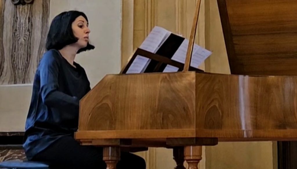 Rachel O’Brien ha guidato con competenza il numeroso pubblico attraverso un percorso storico dei brani scelti, soffermandosi sulle particolarità del fortepiano d’epoca utilizzato. La sensibilità timbrica e la varietà dinamica dello strumento hanno restituito alle composizioni il loro carattere originale, permettendo di cogliere sfumature spesso non percepibili nelle esecuzioni moderne. La matinée si è aperta con la brillante Sonata in re maggiore, op. 4 n. 1 – Allegro assai di Muzio Clementi, eseguita da Alice Baccalini, che ha messo in luce la chiarezza delle linee melodiche e l’eleganza della scrittura classica nella timbrica d’epoca, una timbrica che ha accompagnato i brani successivi. L’interpretazione della trentatreenne pianista milanese, specializzata nel fortepiano, ha rivelato una raffinata accuratezza, attenta a ogni dettaglio e con una visione completa dei brani proposti. Queste qualità sono emerse sia nell’accompagnamento della voce di Hoshina sia nei pezzi per solo tastiera. L’affermato soprano giapponese, ha interpretato con freschezza e precisione arie tratte da opere di Giovanni Battista Pergolesi e Girolamo Crescentini, tra cui La serva padrona – Stizzoso, mio stizzoso e alcune ariette come Oh teneri piaceri e Clori, la pastorella, rivelando una capacità espressiva estroversa e una restituzione timbrica controllata, perfetta nei registri più alti. Il programma è proseguito con pagine di Niccolò Antonio Zingarelli e Domenico Cimarosa, in cui l’alternanza tra sonate – come l’Allegretto dalla nota Sonata in fa maggiore – e arie da opera ha offerto un vivido spaccato della vita musicale italiana tra Sette e Ottocento.