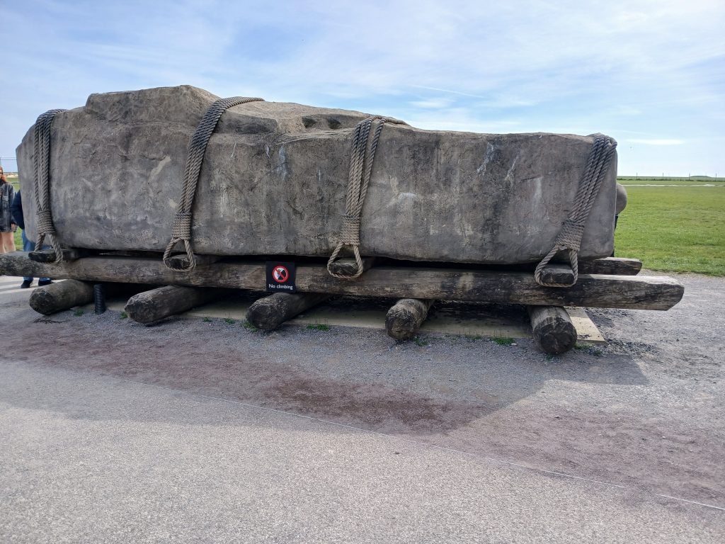 Una prima domanda può essere squisitamente “tecnica”: come fu possibile il trasporto di tali pietre fino a Stonehenge? Si suppone che fossero trascinate da centinaia di individui, tramite funi, su slitte di tronchi che fungevano da rulli. Si può osservare un modello di tale tipologia di trasporto all’esterno del centro visite (e si può provare anche a tirare una corda!). Forse anche il fiume Avon, nei pressi, poté essere usato nell’ultimo tratto, collocando le pietre su imbarcazioni speciali. L’ipotesi che ci sia stato uno spostamento naturale dovuto a ghiacciai è stata scartata definitivamente da ricerche litologiche e geologiche. È in ogni caso indubbio che furono messe a dura prova capacità tecniche, abilità fisiche, doti di resistenza a sforzi immani!