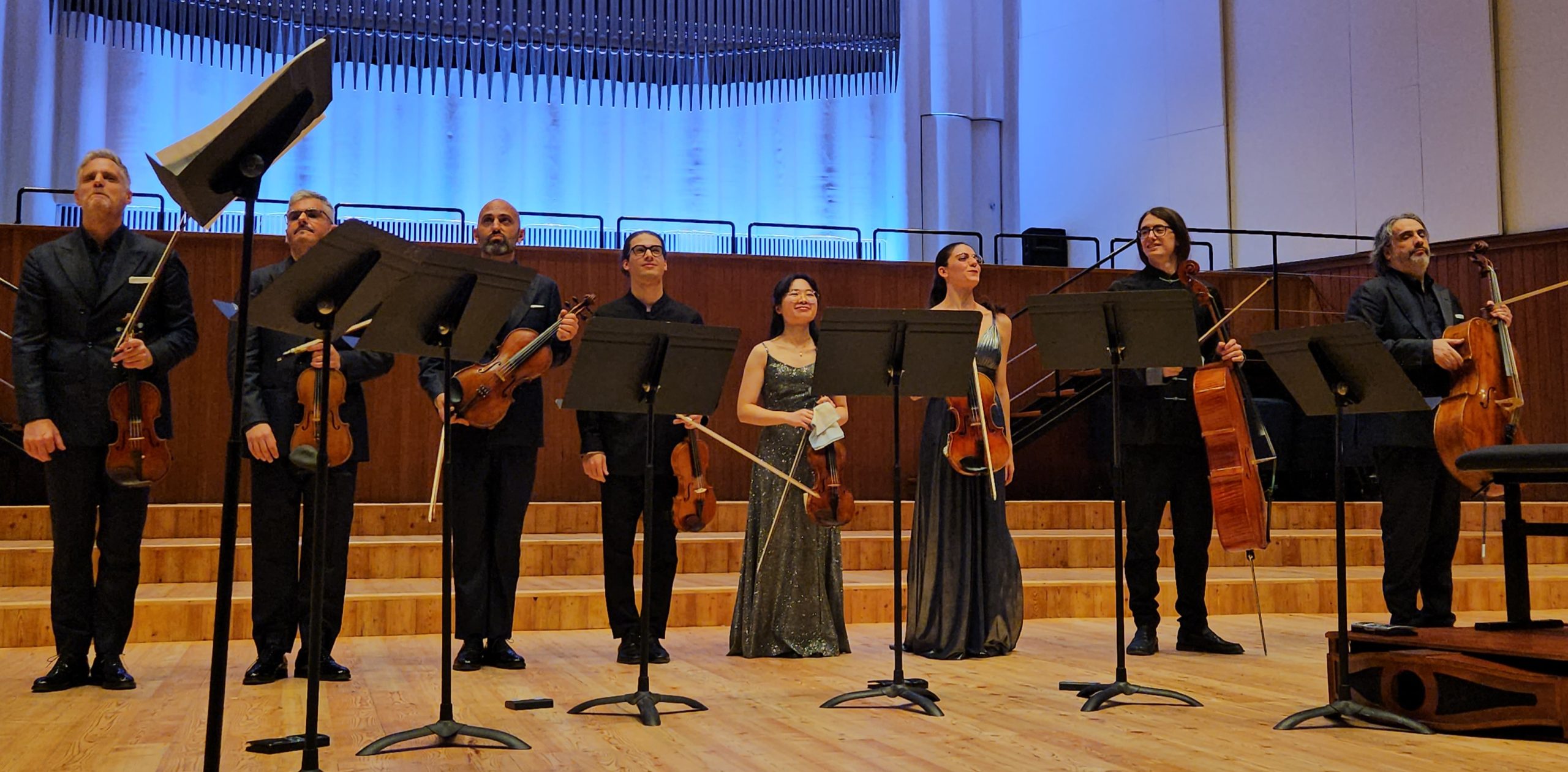 Dopo l’intervallo, il palco ha accolto anche i giovani musicisti del Quartetto GoldbergJingzhi Zhang e Giacomo Lucato ai violini, Matilde Simionato alla viola, Martino Simionato al violoncello – per l’Ottetto in mi bemolle maggiore op. 20 di Felix Mendelssohn. L’incontro tra le due formazioni ha trasformato la scrittura mendelssohniana in una vera conversazione d’insieme, esaltando la vitalità ritmica e la trasparenza delle otto voci intrecciate. Composto quando l’autore aveva appena sedici anni, l’Ottetto è un inno alla giovinezza, alla fiducia nel suono come spazio condiviso: un perfetto contrappunto alla densità schubertiana della prima parte.