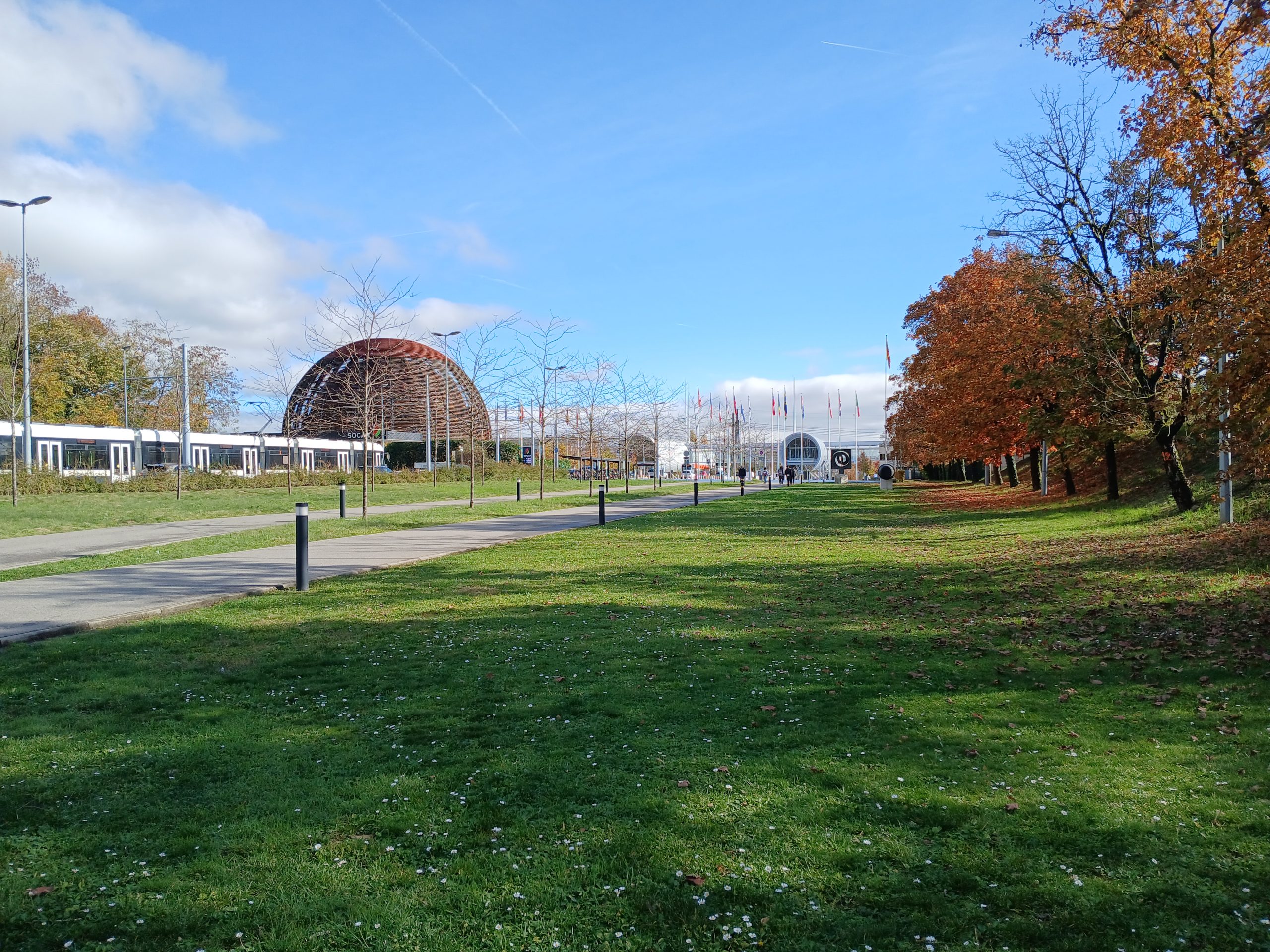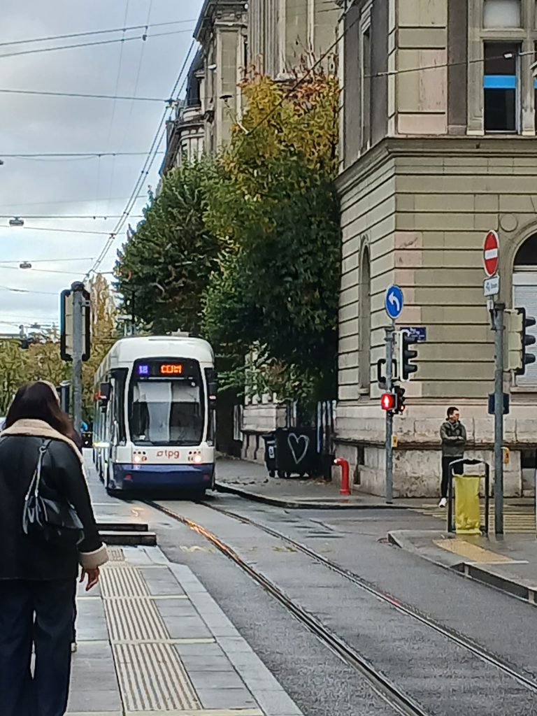 Il viaggio sul 18 copre in poco più di mezz’ora la distanza, in una quindicina di fermate fino a “Meyrin, CERN”, prevalentemente su un lungo rettilineo. Eventuali problemi sulla linea – per esempio un incidente che interrompe la circolazione, come abbiamo purtroppo sperimentato! – sono risolvibili comunque in un tempo accettabile, grazie al fatto che i tram hanno due cabine di guida alle estremità e possono quindi essere usati in modo “reversibile”, in entrambe le direzioni.